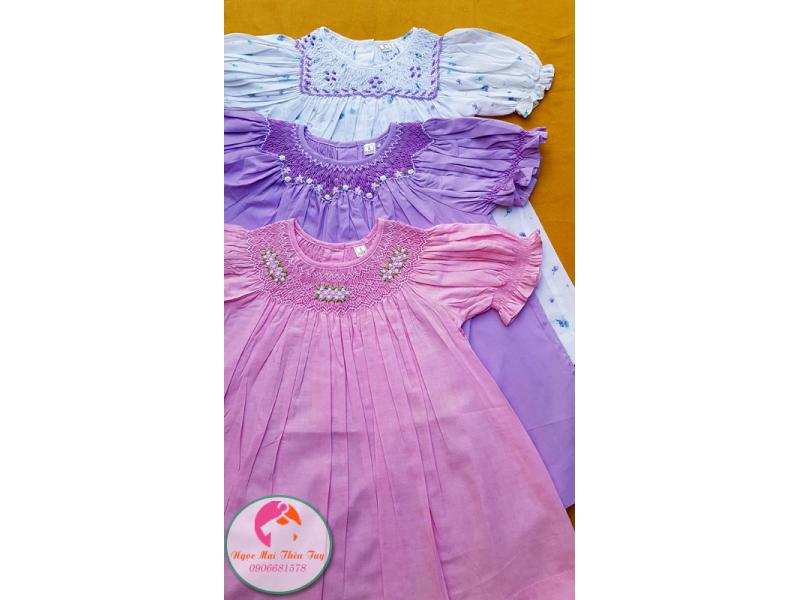 Giá: 300,000 VNĐ  Đầm Smock thêu tay - Mẫu thời trang trẻ em Handmade được các nước rất ưa chuộng để diện cho các bé gái. - Với thiết kế tay phồng bồng bềnh và duyên dáng với điểm nhấn là lớp xích móc cong lượn quanh cổ áo tựa như chuỗi vòng cổ handmade trên váy áo thêu trẻ em móc xích. - Váy đầm handmade smocking có tùng xòe rộng kết hợp với chất liệu kate,cotton 100% mềm, mịn tạo cảm giác thoáng mát cho con khi chơi đùa. Size 1-8 tuổi (10-30kg) NGỌC MAI THÊU TAY: BÁN SỈ, GIA CÔNG ÁO QUẦN THÊU TAY - XÍCH MÓC