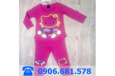 Giá: 115,000 VNĐ Bộ thun bé gái tay dài có hình mèo Kitty quần dài giữ ấm, size 1-7:10-22kg
