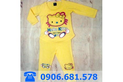 Bộ thun bé gái tay dài có hình mèo Kitty quần dài giữ ấm