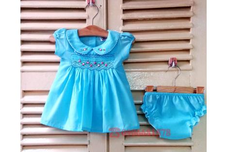 Kiểu Váy thêu tay smock cổ sen dành cho trẻ sơ sinh kèm quần chip có nhiều màu: trắng, hồng, kem, vàng, xanh biển,...