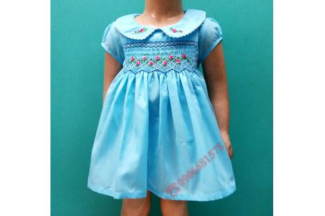 Váy thêu smock cho bé gái được thiết kế đơn giản là kiểu váy em bé với form xòe và ngực áo được thêu 1 lớp smock kèm hoa văn xinh xắn. Đây là điểm nhấn tạo nét đẹp đặc biệt đầy duyên dáng cho những bé gái mặc trang phục váy, đầm thêu tay.